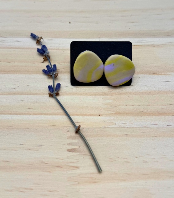 Ręcznie wykonane kolczyki z glinki  polimerowej z trwałością i hipoalergicznymi właściwościami stali chirurgicznej. Każda para jest unikatowa — subtelne różnice w odcieniu i fakturze podkreślają rękodzielniczy charakter biżuterii.