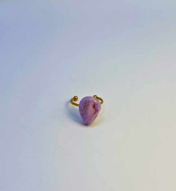 Ręcznie wykonany pierścionek z glinki  polimerowej , łączy  naturalną estetykę z trwałością i hipoalergicznymi właściwościami stali chirurgicznej. Każda para jest unikatowa — subtelne różnice w odcieniu i fakturze podkreślają rękodzielniczy charakter biżuterii.